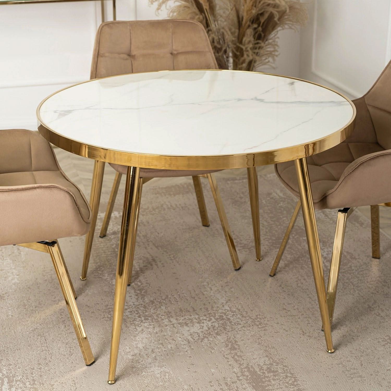 Круглый стол TINGA 100 см, белый мрамор/золтый