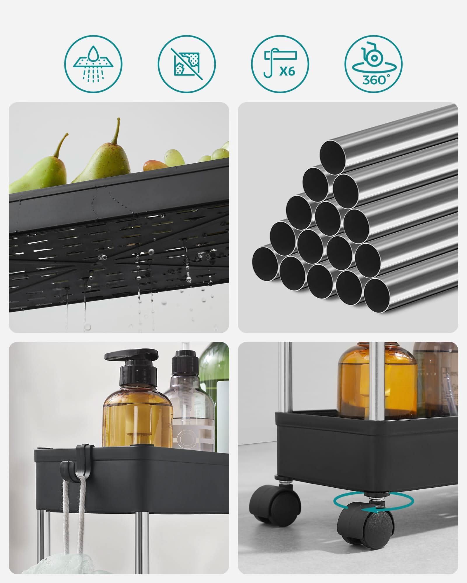 Шкаф на колесиках с 4 полками KSC008B01, черный