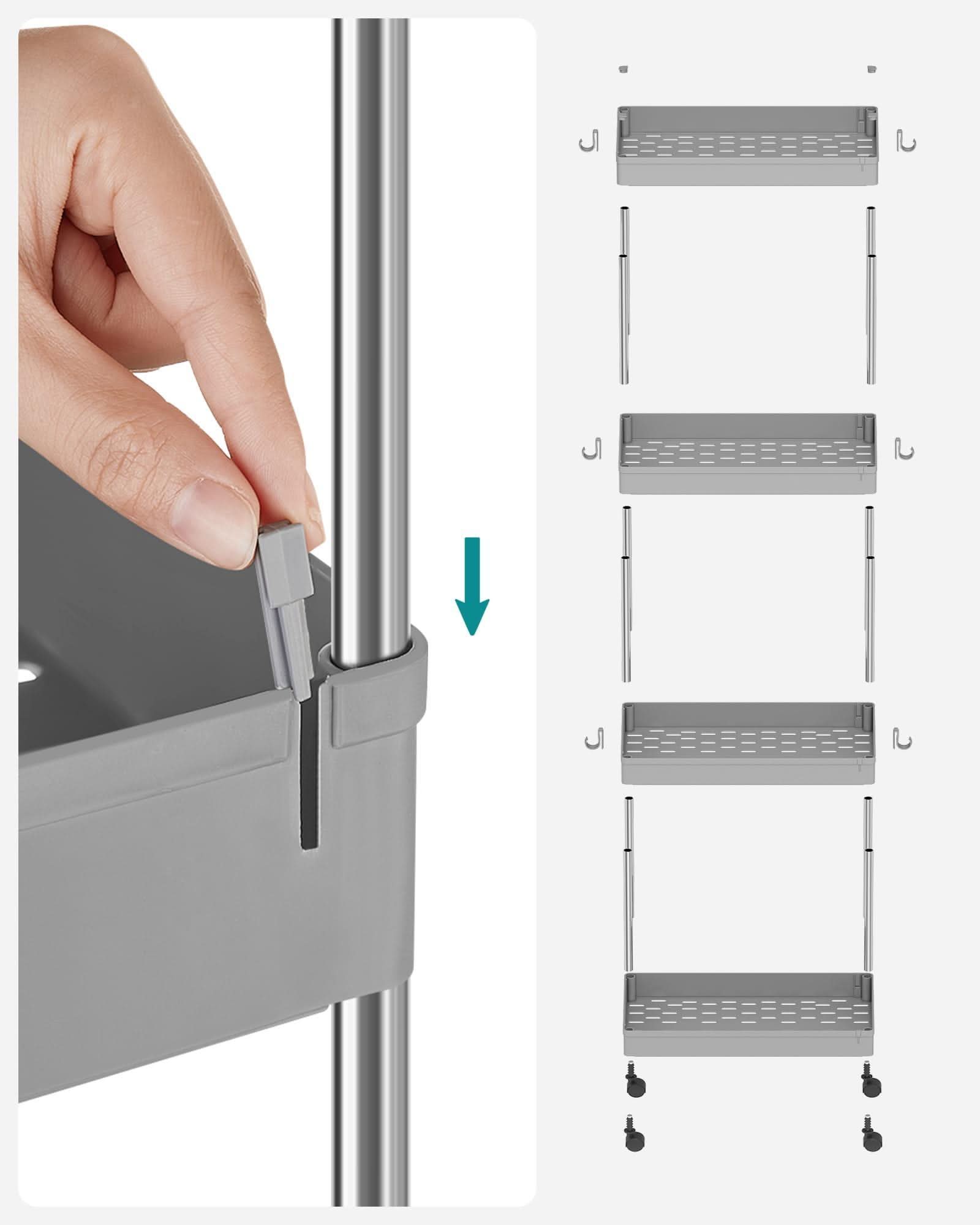 Этажерка на колесиках с четырьмя полками KSC010G01, серая.