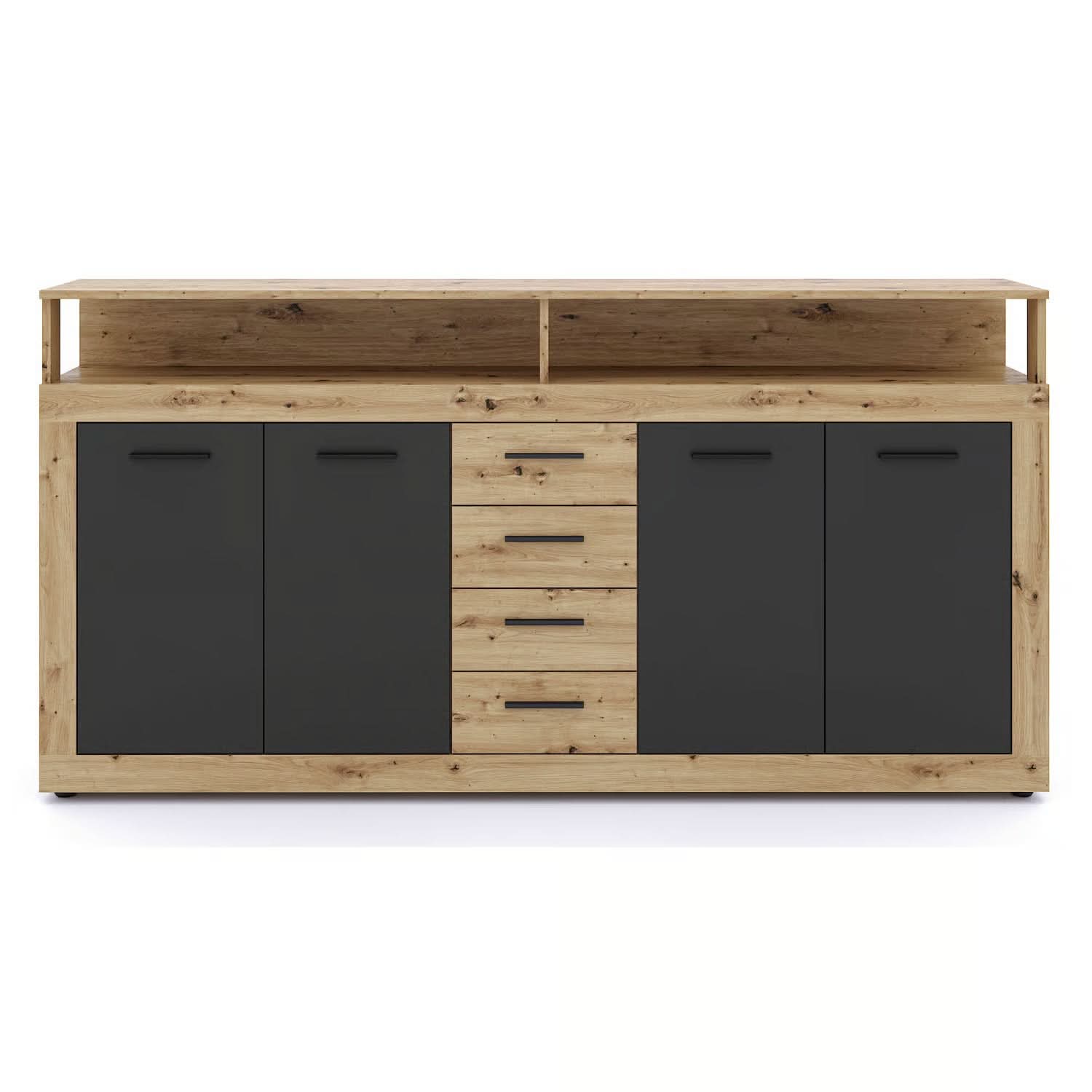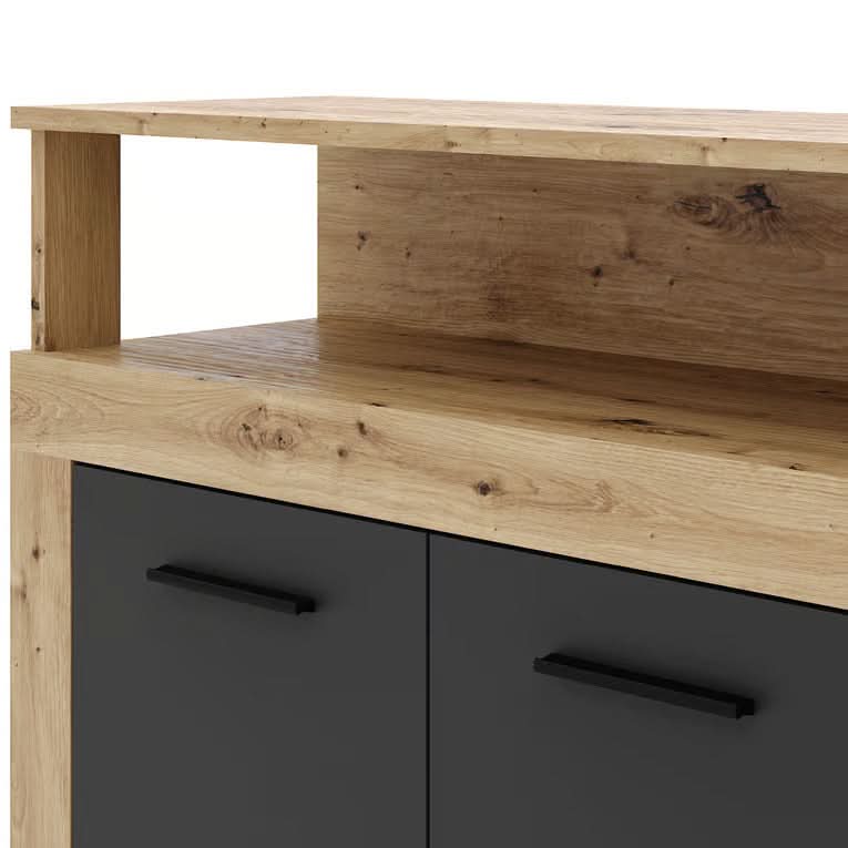 Комод BLAGO с четырьмя дверцами, 190 см, светлый дуб / черный, современный стиль лофт