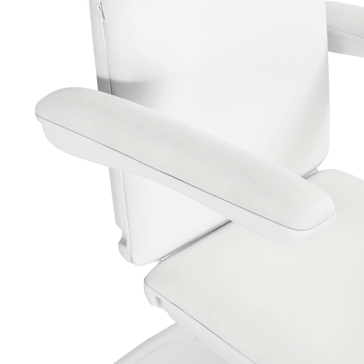 Подголовник с возможностью выдвижения до 20 см позволяет адаптировать кушетку к росту пользователя, обеспечивая стабильную опору для головы во время процедур. Подвижные подлокотники, поворачивающиеся на 180°, облегчают размещение на сиденье и обеспечивают удобный доступ для специалиста, проводящего процедуру. При необходимости их также можно легко снять. Эти удобства повышают комфорт использования и способствуют эргономичной организации работы.
