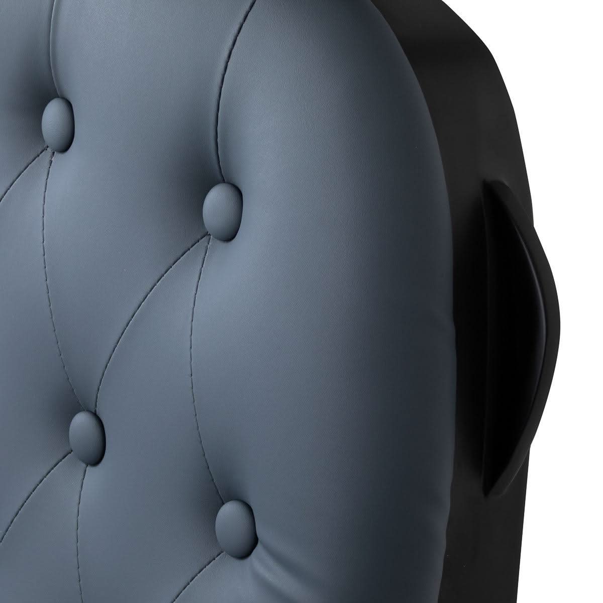Устойчивая конструкция основания с элементами черного цвета обеспечивает высокий комфорт использования. Наполнитель из прочного, устойчивого к деформации пенополиуретана и приятная на ощупь обивка из искусственной кожи обеспечивают долговечность изделия и удобство использования в течение длительного времени. Кроме того, оборудование устойчиво к влаге, прочное и легко моется. Обивка графитовых оттенков с оригинальной прострочкой и декоративными пуговицами придает ему эксклюзивный характер. Дизайнерские декоративные элементы, вдохновленные мотоциклами и напоминающие винтажный стиль, прекрасно вписываются в атмосферу барбершопов, создавая неповторимую обстановку.